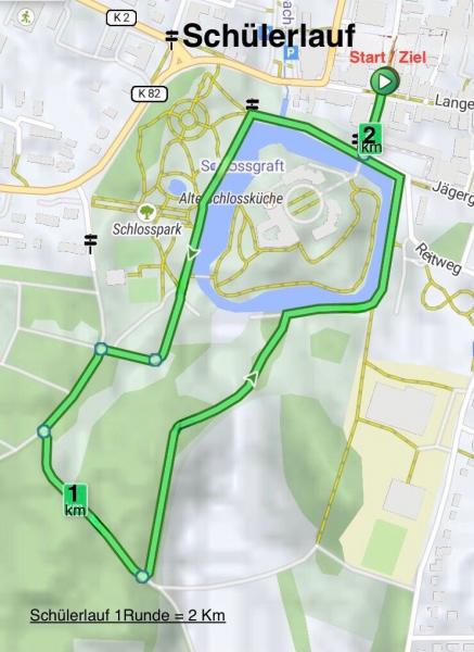 vorbei an einer Schwefelquelle wieder in den Schlosspark. Die Runde muss zweimal gelaufen werden.